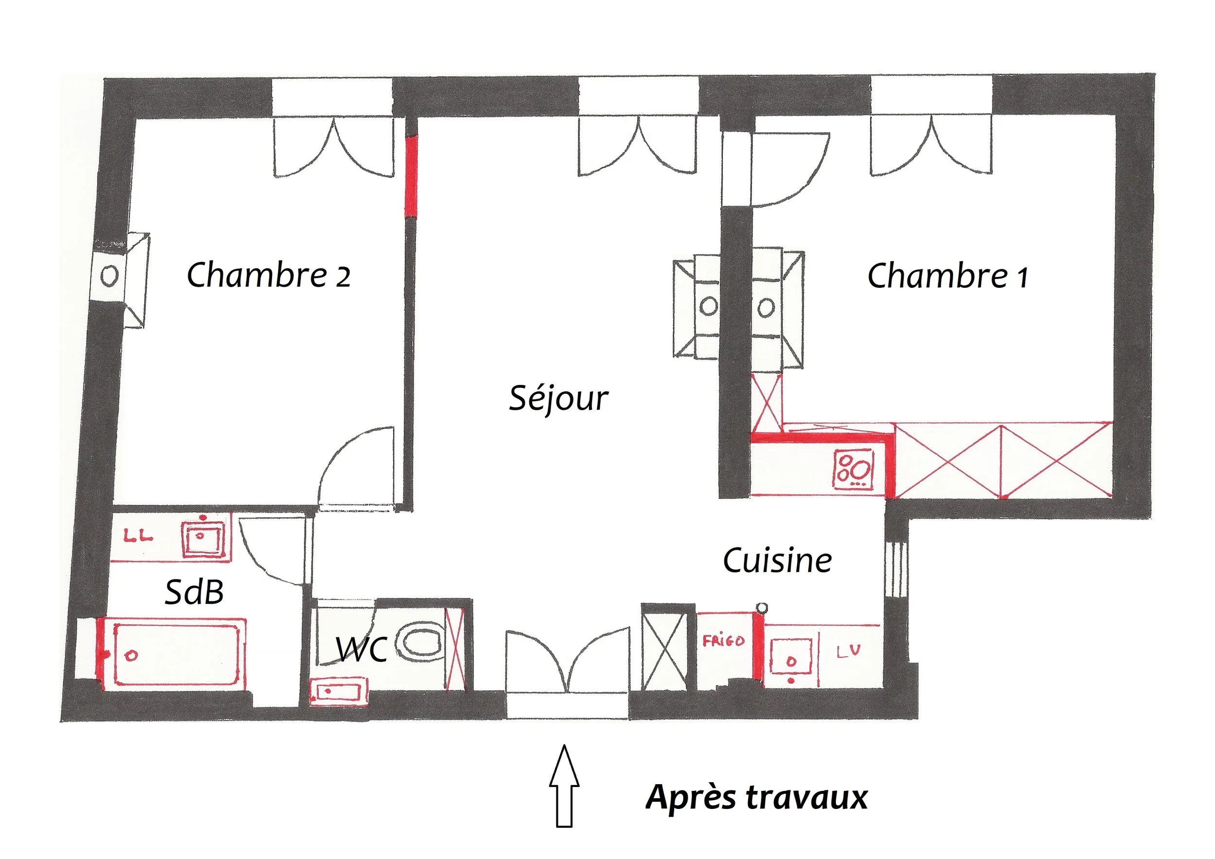 L'objectif de la rénovation était d'agrandir ces 2 pièces, tout en conservant les 2 chambres.