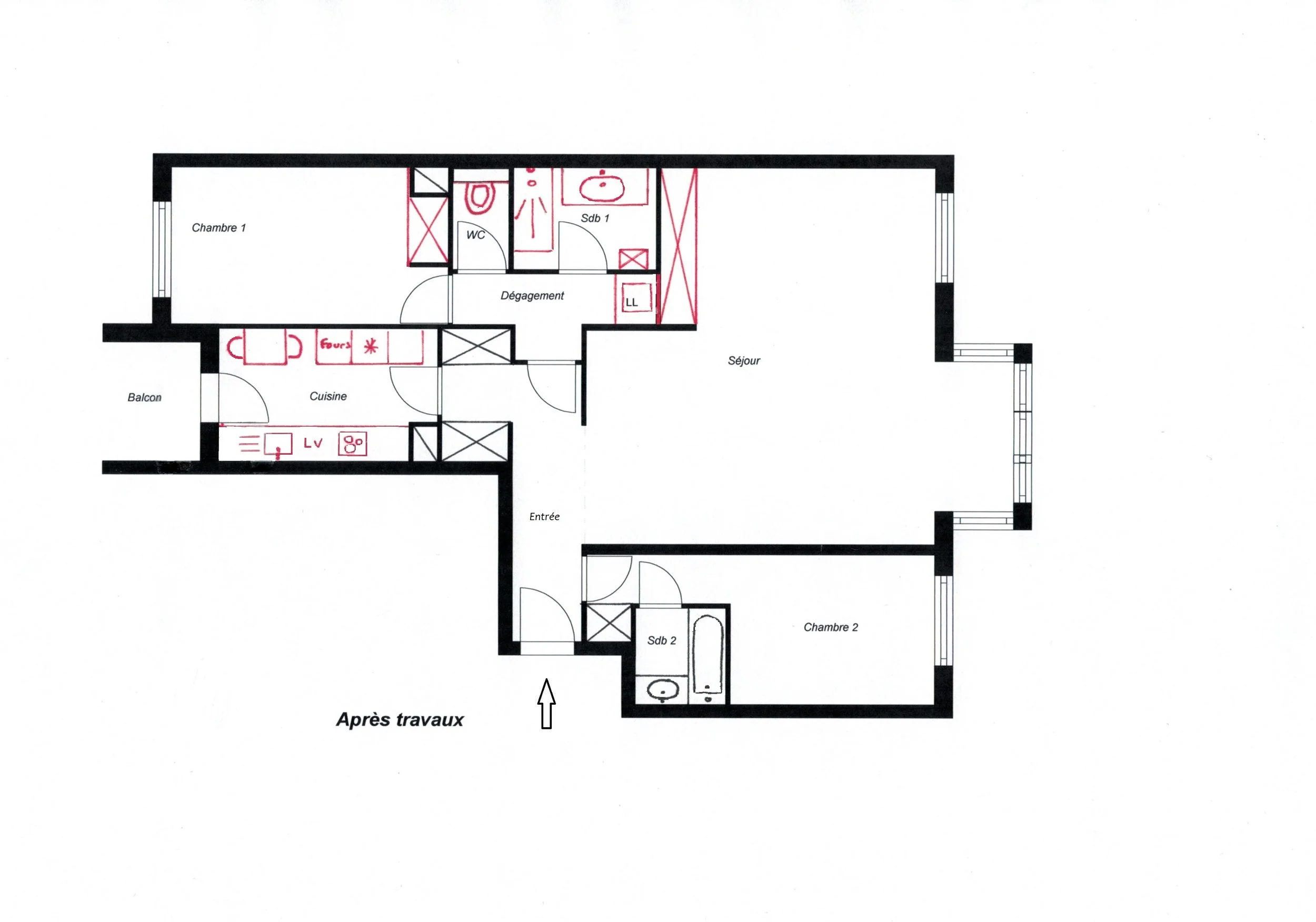 La propriétaire souhaitait une grande pièce à vivre et d’avantage de rangements dans l’appartement qu’elle venait d’acquérir.
