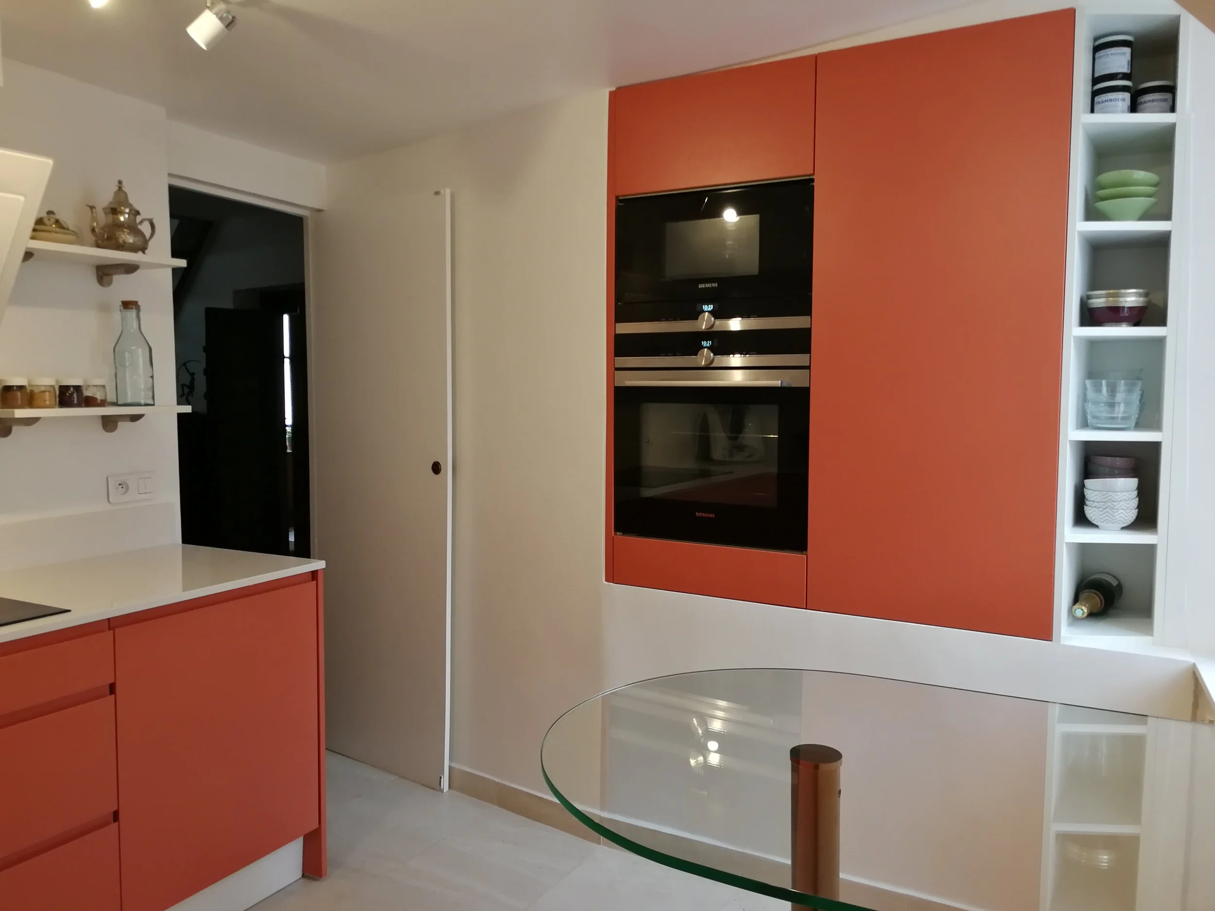 Objectif complètement atteint! Voici une pièce chaleureuse, belle et pratique, où cuisiner et prendre un repas sont devenus un vrai plaisir.
